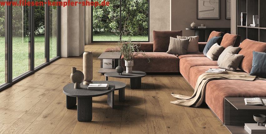 Die Feinsteinzeugfliese Este ist ein innovativer und nachhaltiger Bodenbelag mit einer harmonischen und natürlichen Oberfläche in Holzoptik. Sie ist sowohl für die Verlegung auf dem Boden, als auch an der Wand geeignet. Die Vielfalt an Formaten und Formteile bietet zahlreiche Gestaltungsmöglichkeiten für Ihr Heim. Mit ihrer natürlichen Oberfläche wirkt jeder Raum wie mit echtem Holzboden ausgestattet, so dass Sie sich den Wald ins Haus holen. Mit dieser Bodenfliese ist jedes Kind, jedes Haustier und jeder Gast herzlich Willkommen.
