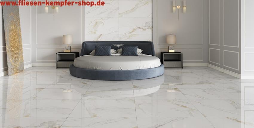 Dieses Hochglanz polierte Feinsteinzeug läßt Ihr Heim von Grund auf erstrahlen. Die zeitlose Eleganz mit Marmorierung sorgt für ein bleibendes exklusives Wohlgefühl. in gediegener Atmosphäre. Die Bodenfliese ist ein extrem guter Wärmeleiter und daher perfekt geeignet auch für Fußbodenheizung. Selbstverständlich ist zur optischen Vergrößerung von Räumen ebenso die Verlegung an der Wand möglich. Gestalten Sie Ihre Räume! Diese Fliese in Hochglanz benötigt jedoch keine imprägnierende Schutzschicht. Für die Unterhaltspflege nutzen Sie Reiniger aus unserem Sortiment.