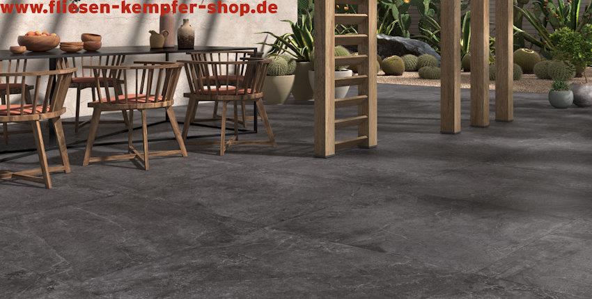 und wohnliches Aussehen mit natürlichem Charakter und Charme. Auf Terrasse und Balkon entsteht mit diesem Feinsteinzeug naturnahe ein